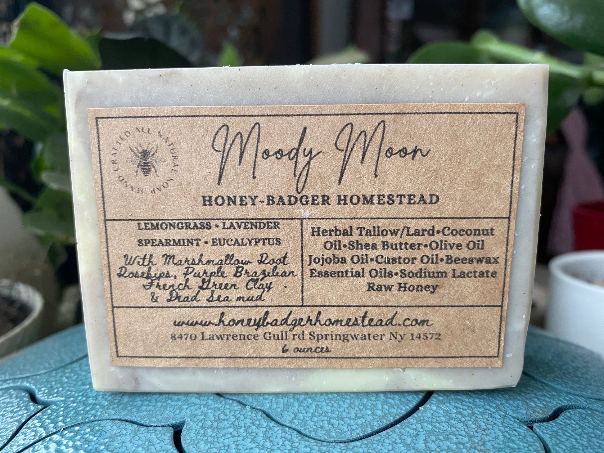 Moody Moon is a slow-crafted tallow soap made for skin that craves depth, balance, and quiet nourishment. At its core is herb-infused marshmallow root, gently steeped to create a lather that feels creamy, soft, and soothing from the first use.